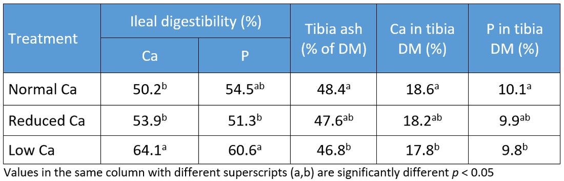 - Ca digestibility was highest at the lowest Ca inclusion level
