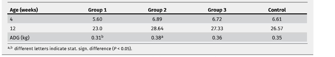 A higher DWG was determined in the pigs with the 2-time and 3-time Tilmovet medication in comparison to the control and the 1-time medication group (Table 3)