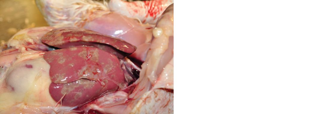 Histomoniasis causes very typical lesions in the caeca and liver, therefore the diagnosis can be easily made when doing necropsy on dead or diseased turkeys (Figures 1 and 2). Laboratory diagnosis by microscopy, histology, PCR or cultivation can be used for diagnosis confirmation.