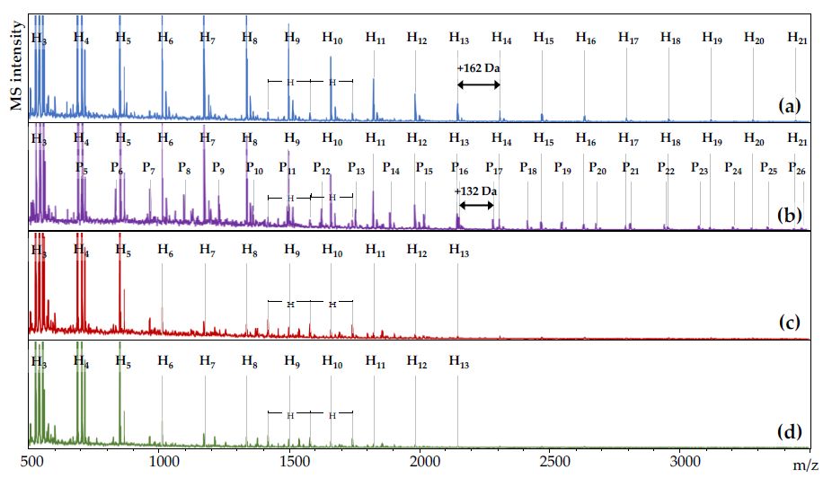 2.4.3. Oligosaccharide characterization by matrix-assisted laser desorption/ionization time-of-flight mass spectrometry (MALDI-TOF-MS)