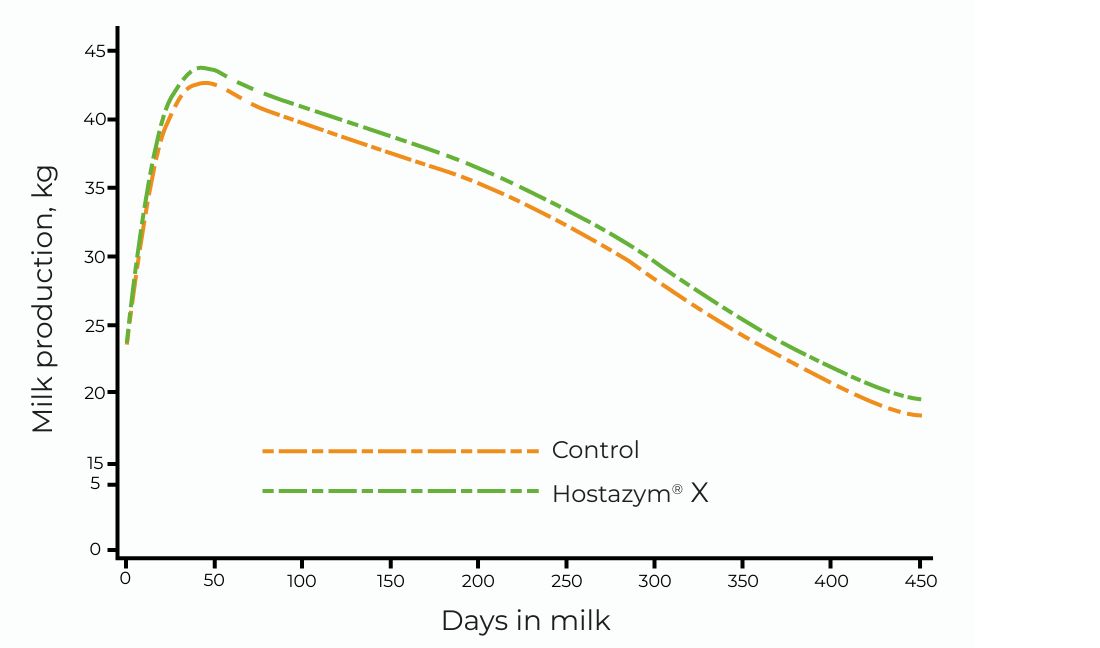 Hostazym® X is ideally adapted to the rumen conditions of the dairy cow.