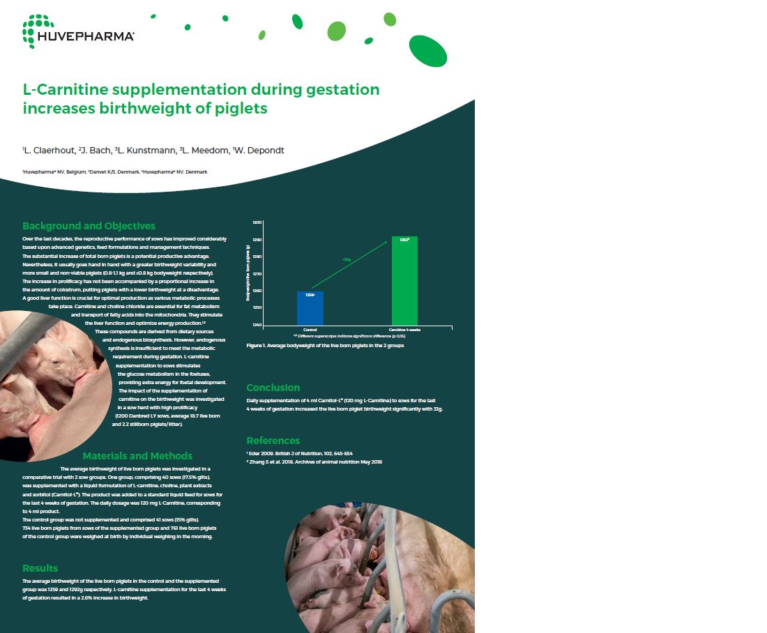 Improvements in reproductive performance have increased litter sizes, but this has resulted in greater birthweight variability and more small and non-viable piglets. And the increase in prolificacy has not been accompanied by an increase in the amount of colostrum produced by the sow, so smaller piglets are at an immediate disadvantage. Supplementation of sow diets with Carnitol-L for the last 4 weeks of gestation significantly increases live born piglet birthweights.