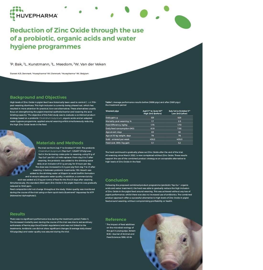 A field study showed that when using the combination of a probiotic (Top Gut®), organic acids, and water hygiene programmes, piglet performance was maintained as zinc oxide was gradually removed from the feed, without any increase in antibiotic use.