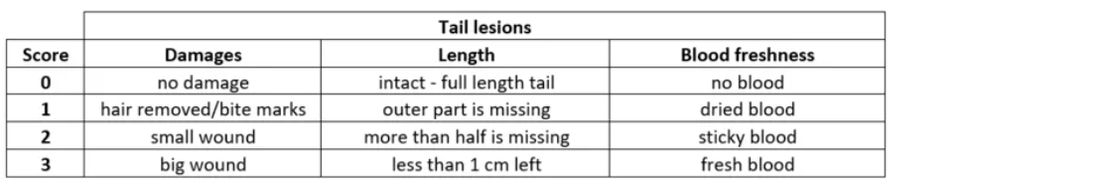 - Tail lesions of every pig (score criteria shown in Table 1)