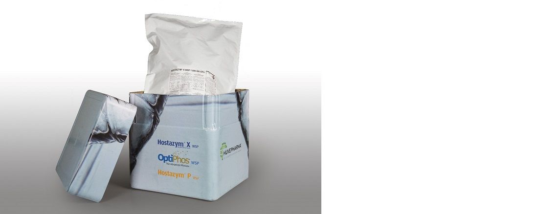 - Daily production of fresh liquid OptiPhos® phytase - based on highly concentrated WSP (water-soluble powder containing 750,000 FTU/g)