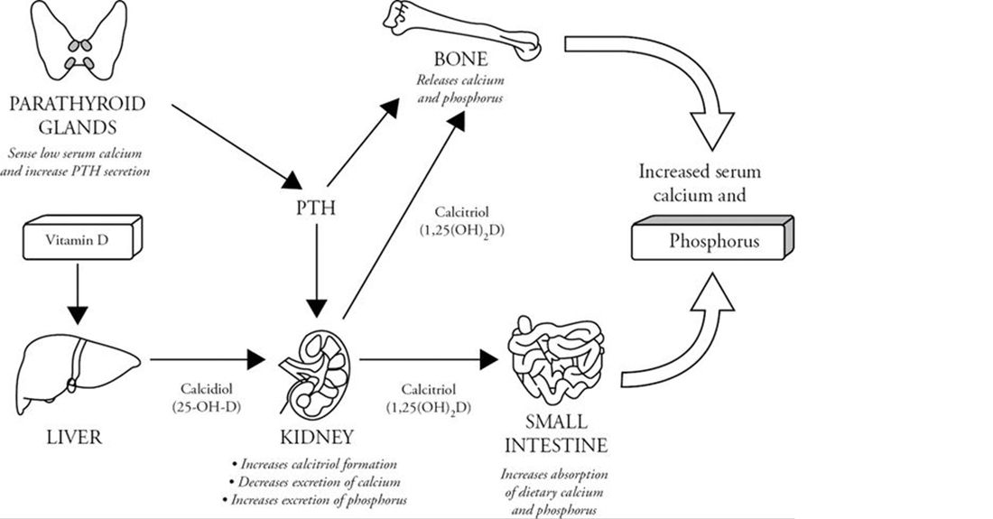 Vitamin D3 itself is initially taken up from the intestine in association with fats, requiring the presence of bile salts for absorption. It then undergoes a first hydroxylation in the liver, forming 25-hydroxyvitamin D3. A second hydroxylation in the kidneys transforms 25-hydroxyvitamin D3 to 1,25-dihydroxyvitamin D3, yielding the active form of vitamin D. This metabolite is considered a hormone and regulates the intestinal absorption of calcium, bone homeostasis, calcium release from bone and the reabsorption of the mineral in the kidneys.