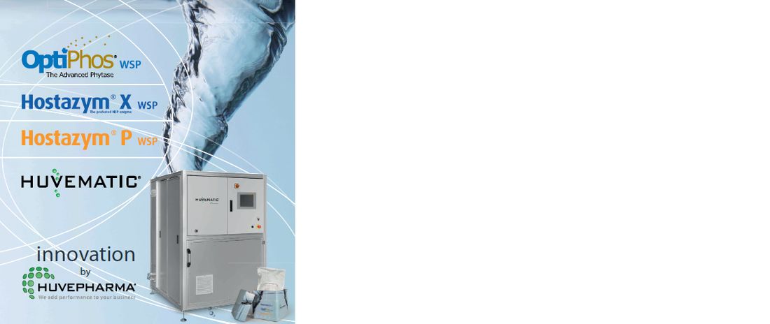 The unique water-soluble technology in the powdered superconcentrate products of OptiPhos® WSP and Hostazym® X WSP manufactured by Huvepharma®, allow the complete replacement of liquid product deliveries in IBCs. As the liquid enzyme is mixed directly on site when it is needed, there is always a fresh supply. The system is also flexible enough to allow a combination of different levels of phytase and non-starch polysaccharide (NSP) enzyme, so each batch of feed can be individually tailored to exact specifications.