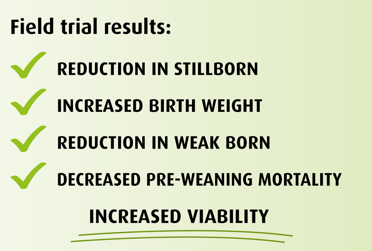 Dose 4 ml/sow/day for the last 4 weeks in the gestation unit + 40 ml/sow/day from entering the farrowing unit until farrowing